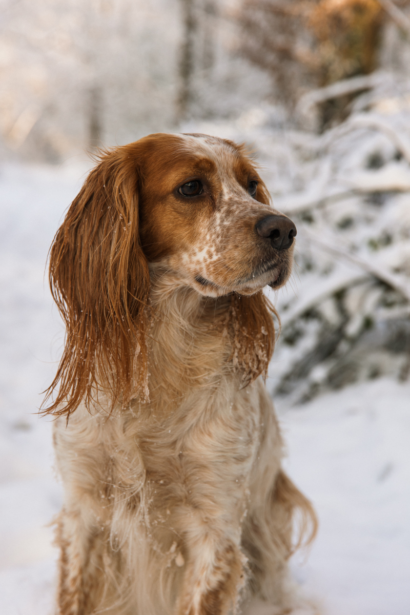 而可卡犬有着适度大小的椭圆形眼睛、适度平坦的颅部、适度的额段、适度狭长的吻部、适度丰满的上唇、中规中矩。